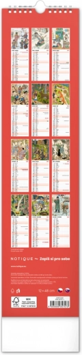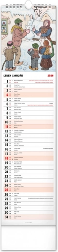 Calendrier mural avec des illustrations de Josef Lada au format étroit apprécié, qui égayera votre intérieur. Il contient une version tchèque et slovaque et offre de l’espace pour des notes.