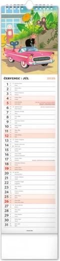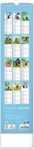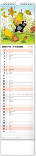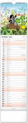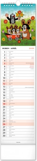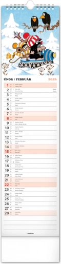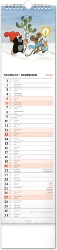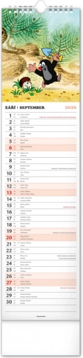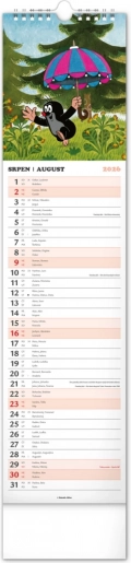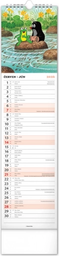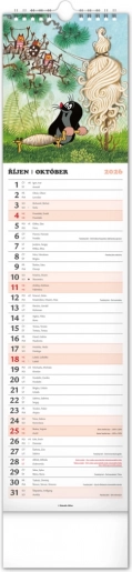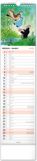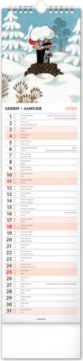 Calendrier mural attrayant avec des illustrations de Zdeněk Miler et un format pratique allongé. Le calendrier comprend un calendrier tchèque et slovaque avec prénoms, fêtes, jours commémoratifs et phases de la lune.