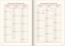 L'agenda comprend un emploi du temps quotidien avec un calendrier tchécoslovaque et des langues supplémentaires, y compris l'anglais, l'allemand, le hongrois et le russe.