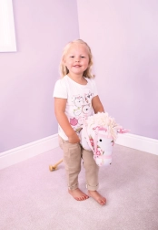 Profitez d'heures de jeu actif avec ce mignon petit cheval au motif fleuri monté sur une tige en bois. Idéal pour encourager le mouvement et l’exercice lorsque les enfants promènent leur cheval dans la salle de jeux ou le jardin.