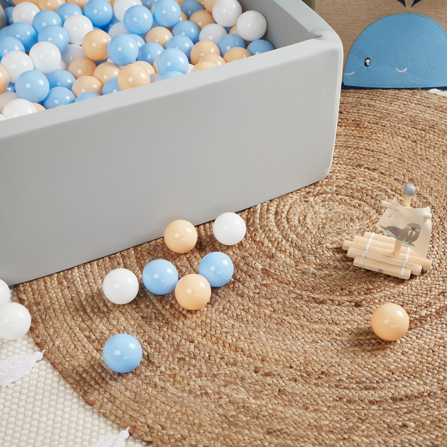 Découvrez la magie et le plaisir avec des balles de jeu colorées de Bieco. Cet ensemble comprend 100 pièces de balles de jeu dans trois belles couleurs : blanc, beige et bleu ciel, parfait pour s'amuser dans le jardin, dans un coin de jeu ou dans la baignoire ou la piscine. Un excellent complément à la joie et au développement de la motricité fine des enfants.