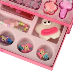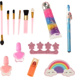 Tous les produits cosmétiques sont non toxiques et permettent aux petites artistes de créer leurs propres looks. Le set comprend tout le nécessaire pour le maquillage et le soin des ongles, notamment des fards aux couleurs variées, des rouges à lèvres et des vernis à ongles. Tous les produits se rincent facilement et en toute sécurité à l’eau.