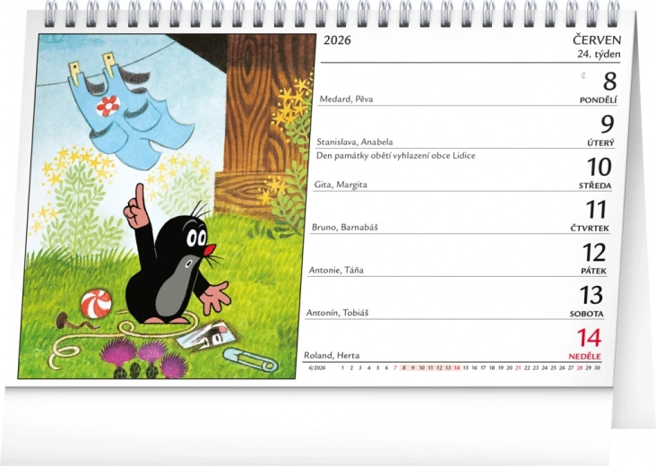 Calendrier de bureau La Petite Taupe 2026 apporte joie et souvenirs des aventures d’enfance avec la célèbre Petite Taupe. Chaque semaine vous ravira par une nouvelle illustration de Zdeněk Miler.