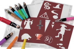 - Pochoirs thématiques – Crée des œuvres magistrales avec des motifs de Poudlard, des Reliques de la Mort et d’autres icônes du monde des sorciers.