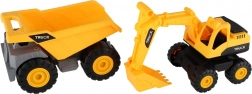 Superbe set pour les petits constructeurs ! Deux véhicules de chantier en plastique résistants avec roue libre, parfaits pour toute collection. Ils se déplacent facilement sur n’importe quelle surface – il suffit de les pousser légèrement et ils roulent.