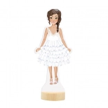 Un élégant socle en bois garantit que la poupée reste bien droite et prête pour de nouveaux défilés de mode.
