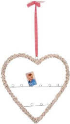 Ce cœur décoratif en osier avec patine blanche est un choix idéal pour exposer de manière claire et créative vos plus beaux moments. Grâce aux œillets métalliques, vous fixez aisément jusqu’à 8 photos et vous les changez rapidement à tout moment. Le nœud suspendu au motif à carreaux rouge et blanc apporte une touche chaleureuse et vintage à l’ensemble.