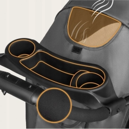 - Grand espace de rangement : Placé dans la partie inférieure de la poussette, il offre suffisamment de place pour tous les objets nécessaires.