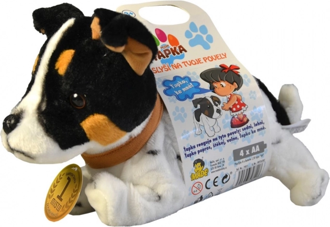 Le chiot Ťapka est conçu pour être un excellent compagnon pour vos enfants. Ce petit ami mignon et fidèle comprend six ordres différents que l’enfant peut lui donner : Assis, Couché, Ťapka, fais la demande, Aboie, Libre, Ťapka, viens à moi. Il réagit à chacun de ces ordres, ce qui en fait un excellent professeur d’obéissance et de jeu.