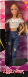 Découvrez la poupée Lucy pleine de style, un accessoire indispensable pour votre collection. Elle est vêtue d’une tenue en jean moderne.