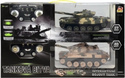 Ensemble de deux chars radiocommandés équipés de chenilles mobiles, de tir et d’effets d’impact pour des expériences de jeu réalistes. L’emballage contient tout le nécessaire pour jouer immédiatement, y compris les piles et le câble de charge.
