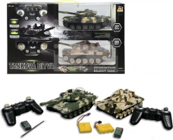 Ce set de chars offre un divertissement interactif riche avec des fonctions de combat réalistes. La fréquence 27/40 MHz garantit un contrôle fiable jusqu’à une distance de 15 m. Chaque char est doté de canons avec diodes infrarouges pour enregistrer les impacts. Les télécommandes intègrent une gâchette pour une véritable expérience de combat. Lorsqu’un char est touché, un son d’explosion retentit et les diodes sur la tourelle décomptent les « vies ».