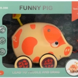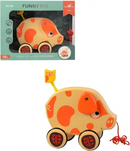 Petit cochon à ficelle est un jouet amusant pour les enfants qui apportera beaucoup de gaieté. Il suffit de le tirer par la ficelle et le petit cochon suivra, tout en animant le jeu avec un joyeux mouvement de la queue.