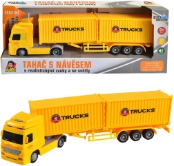 Découvrez le plaisir de conduire avec ce camion dynamique à volant d'inertie, fourni avec deux conteneurs. Ce modèle est idéal pour les enfants qui aiment les voitures et les moyens de transport. Le camion est équipé de suppléments lumineux et sonores qui apportent une expérience authentique au jeu.