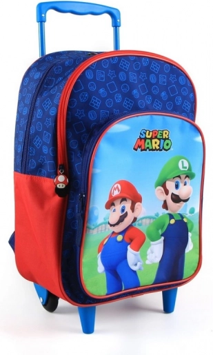 Couleur bleue avec des accents rouges et des motifs ludiques de la série Super Mario qui attirent l’attention des jeunes fans.