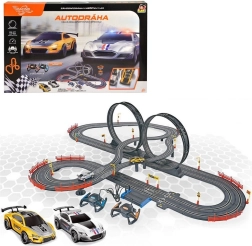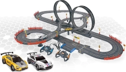 Essayez ce circuit idéal pour les petits et grands pilotes. Il comprend deux voitures et deux contrôleurs, ce qui permet de courir à deux. Les boucles avec pont et autres accessoires garantissent des courses dynamiques et compétitives.