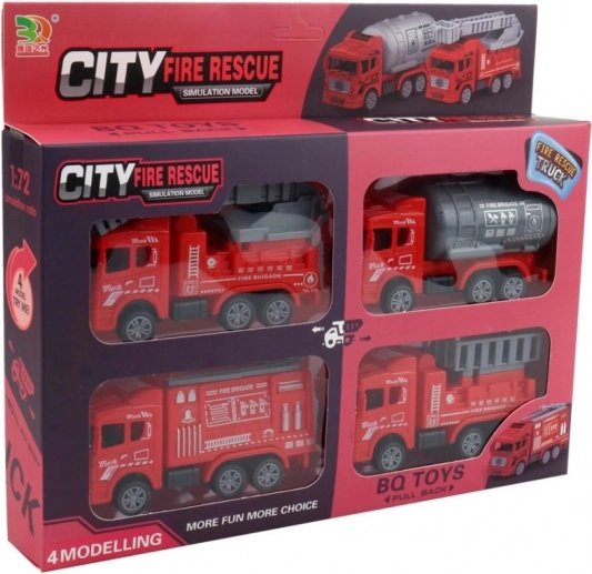 Camion de pompiers à rétrofriction pour enfants 3+. Compact, en plastique, dans un window box attrayant.