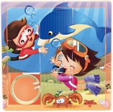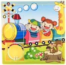 Ce puzzle coulissant est un jouet amusant qui divertira les enfants pendant des heures. Il s'agit d'un ensemble de huit pièces de même taille avec des rainures latérales qui forment une image finale. Les pièces sont facilement déplaçables et encadrées pour éviter de tomber. Le cadre contient une miniature de l'image finale, servant de modèle pour le placement des pièces.