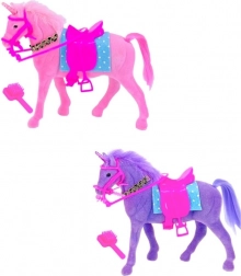 Licorne Cheval avec accessoires est un jouet idéal pour les enfants à partir de 3 ans. Il comprend une bride amovible, un collier, un tapis de selle, une selle et une brosse, garantissant des heures de divertissement.