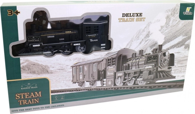 La rame de train nécessite 4 piles de type AA, non incluses. Elle développe la créativité des enfants et offre des heures de divertissement sans fin. L’ensemble est emballé dans une boîte fenêtre (window box), idéale pour un emballage cadeau facile.