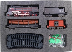 L'expérience de jeu avec cet ensemble de train est renforcée par l'effet de fumée qui sort de la cheminée et du châssis de la locomotive. Le train est livré avec des rails faciles à monter, permettant d'assembler facilement un circuit de 92,5 x 92 cm.