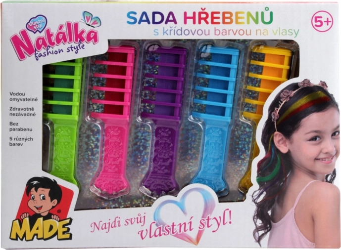 Découvrez le monde des coiffures colorées avec cet incroyable set de peignes. Chacun des cinq peignes offre une couleur différente, ce qui permet de créer des styles fantastiques et uniques. Les couleurs sont entièrement sûres pour les enfants à partir de cinq ans et, grâce à leur lavabilité, l’utilisation est très simple. Elles ne contiennent pas de parabènes, vous pouvez donc être rassuré quant à la santé de vos enfants.