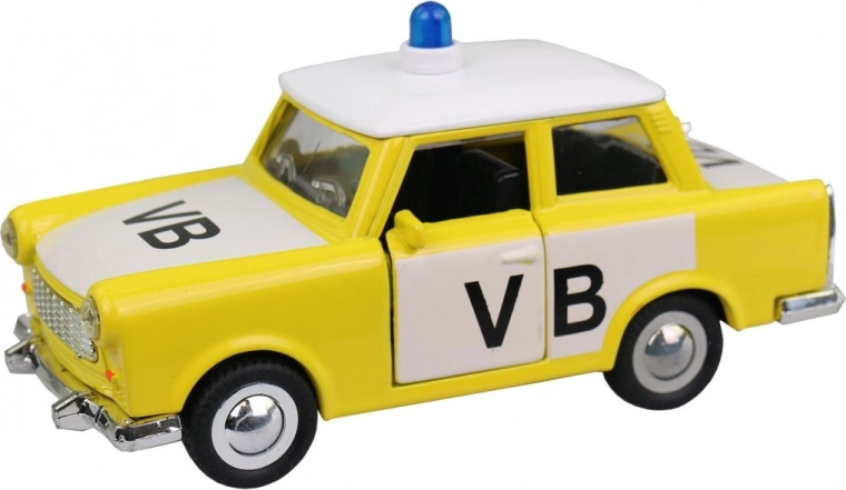 Voiture Trabant en version police est un petit modèle en métal idéal pour les garçons qui aiment les jeux palpitants avec des voitures de police.