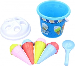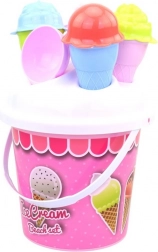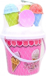 Le set comprend un seau avec une poignée pour une manipulation et un transport faciles sur la plage ou dans le bac à sable. Le seau est décoré de graphismes de glace attrayants.