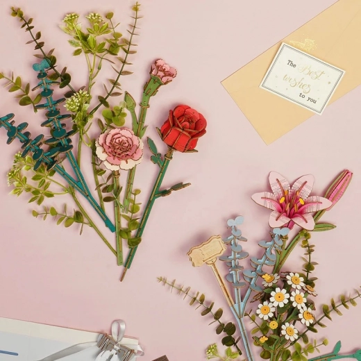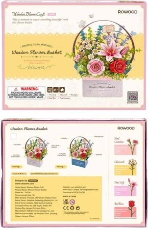 Le puzzle 3D en bois RoboTime Panier de Fleurs offre une expérience de création unique. Des fleurs comme le lys rose, la rose rouge ou l’œillet rose symbolisent l’admiration, la passion et la gratitude. La modélisation 3D favorise le développement de la motricité fine, de la pensée logique et de la patience. Une superbe décoration ou un cadeau pour les esprits créatifs. Le puzzle comprend 428 pièces découpées avec précision au laser, qui s’emboîtent facilement pour former un modèle stable et résistant. Le panier possède des ouvertures pour placer aisément les fleurs selon votre imagination.