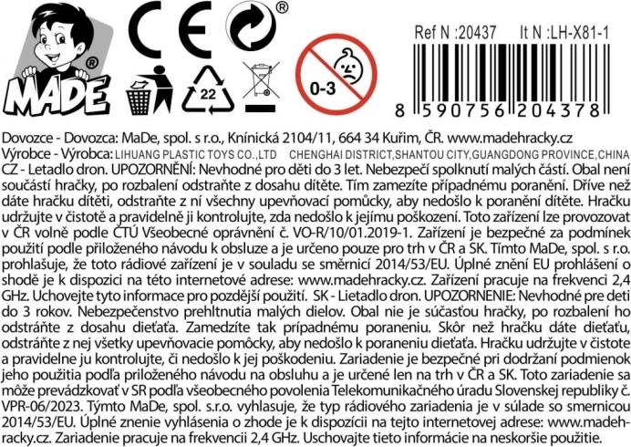 Le contrôle de la vitesse permet aux personnes de plus de 14 ans de tester leurs compétences de pilotage sans nécessité de caméra. L’avion est résistant grâce à son matériau en plastique, assurant une longue durée de vie.