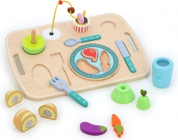 Vilac Plateau d’activités en bois avec aliments est un choix idéal pour les premières aventures à « table ». Il favorise l’autonomie et le développement de la motricité fine. Grâce à ses couleurs joyeuses et ses formes agréables, il convient même aux plus petits.