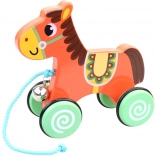 Ce jouet à tirer en bois en forme de cheval offre non seulement du divertissement, mais stimule aussi les sens grâce à sa clochette, qui émet un doux tintement lorsqu’on le met en mouvement. Il est fabriqué en bois de qualité et mesure 16 cm, ce qui le rend facile à manipuler par les petites mains.