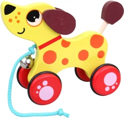Ce charmant jouet à tirer en bois en forme de chien offre non seulement une belle palette de couleurs, mais aussi un élément interactif grâce à la clochette qui émet un son délicat lorsque le jouet est en mouvement. Amusement garanti pour les enfants !