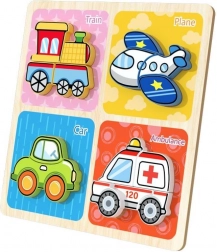 Le puzzle en bois de dimensions 30 x 30 cm est doté d’images de quatre moyens de transport différents, ce qui rend le jeu attrayant et éducatif. Les enfants ne font pas que jouer avec ce puzzle ; ils exercent aussi leur motricité fine et leur pensée logique, idéal pour les enfants à partir de 3 ans.
