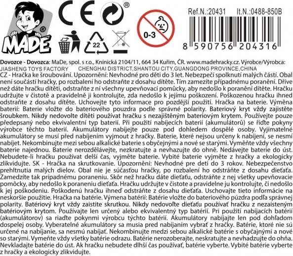 Cette pelleteuse est alimentée par 3 piles de type AG13, incluses dans l’emballage, afin que les enfants puissent l’utiliser immédiatement. Les dimensions du jouet sont de 24 x 11 x 13 cm, ce qui en fait un complément parfait pour la chambre d’enfant.