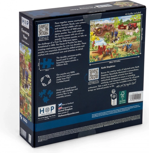 Puzzle L’année du fermier de la marque House of Puzzles offre une expérience incomparable grâce à ses pièces aux formes uniques. Recomposez une belle scène de l’année du fermier qui vous divertira pendant de longues heures.