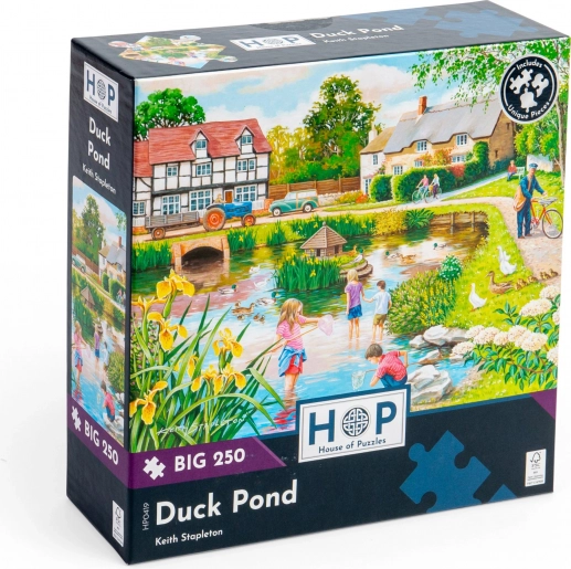 Puzzle Étang des canards BIG de la société House of Puzzles apporte divertissement et défi à tous les amateurs de puzzles grâce à ses formes de pièces uniques et irrégulières.