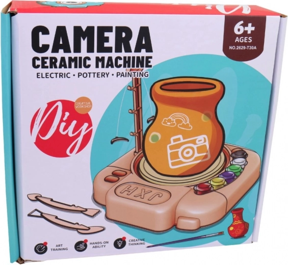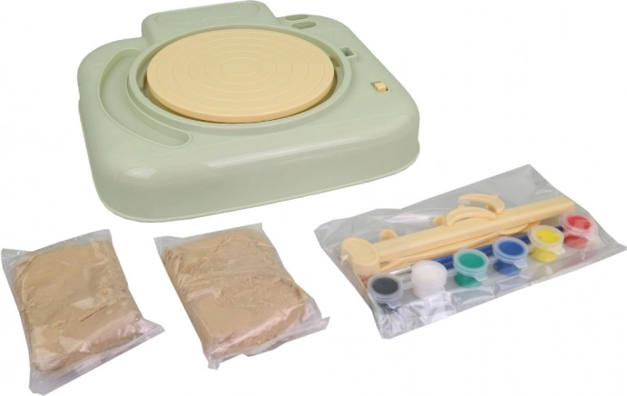 Tour de potier avec accessoires pour enfants dès 6 ans, stimule la créativité et la dextérité. Nécessite 4 piles AA. En plastique, dimensions 25,5 x 25 x 4 cm.