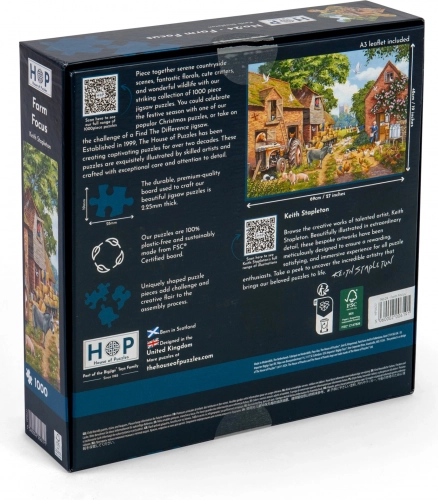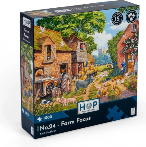 Puzzle House of Puzzles Focus sur la ferme, 1000 pièces aux formes uniques pour le défi et le plaisir. Idéal pour la détente.