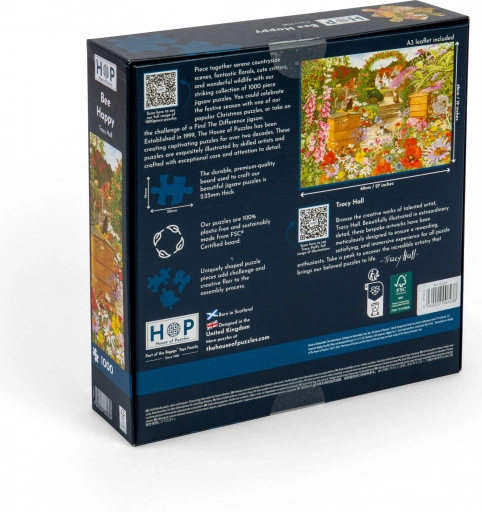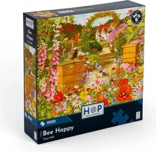Puzzle Bonheur des Abeilles 1000 pièces avec formes uniques de House of Puzzles et poster A3.