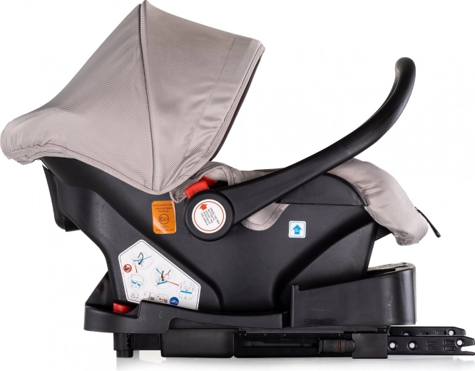 Des détails pratiques facilitent l'utilisation quotidienne : poignée réglable pour le transport, base à bascule pour apaiser bébé, capote amovible et pliante pour la protection contre la lumière et housse facilement amovible lavable à la main à 30 °C. Le siège auto peut être installé simplement à l'aide de la ceinture de sécurité 3 points du véhicule.