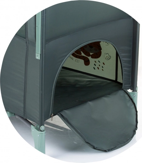 Le lit est destiné aux nouveau-nés et aux enfants jusqu’à 15 kg. Il présente un motif animalier attrayant et un côté rabattable offrant deux niveaux d’utilisation. D’un côté, une poche pour accessoires et une ouverture zippée permettent un accès facile au bébé.