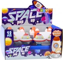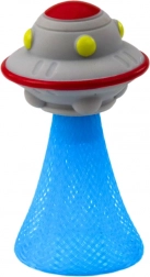 Ce vaisseau spatial sautant apporte aux enfants un divertissement plein de mouvement et d’effets lumineux. Il suffit d’appuyer sur le jouet par le haut et de le poser sur une surface plane – il bondit alors énergiquement en l’air et clignote avec des lumières colorées.