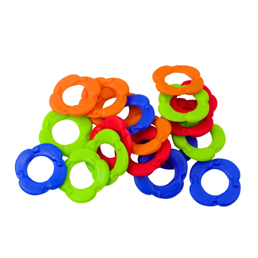 Le set comprend 20 anneaux colorés en 4 couleurs et une grande figurine de gorille sur une base stable. Le gorille tourne automatiquement, ce qui rend le jeu encore plus intéressant et exigeant.