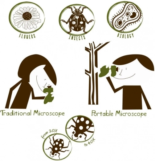 Avec le microscope portable Navir Explora, l’exploration de la nature est à portée de main. Léger et facile à utiliser, ce microscope pour enfants dès 6 ans offre une vue fascinante sur des détails invisibles à l’œil nu. Grâce à un grossissement de 20× à 40× et à un éclairage LED intégré, il est idéal pour permettre aux petits explorateurs d’observer confortablement plantes, pierres ou insectes partout dans la nature.