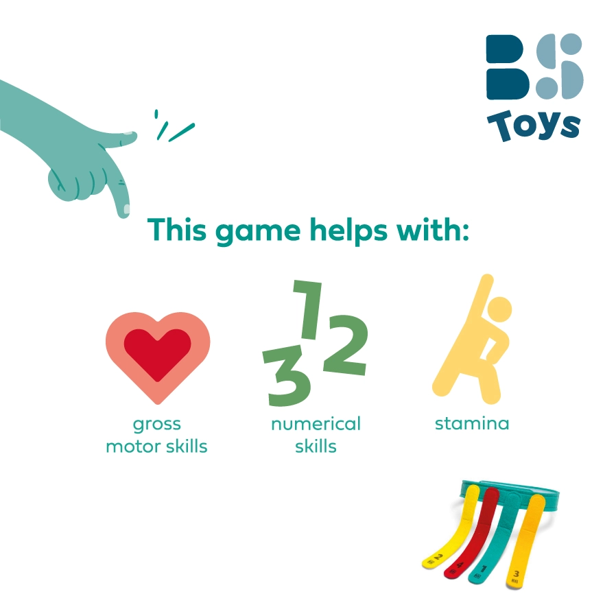 Ce jeu dynamique est un excellent choix pour s’amuser au grand air avec vos amis et votre famille. Chaque joueur commence avec quatre queues colorées fixées à une ceinture par un velcro. L’objectif est de capturer le plus de queues possible aux autres joueurs, rapidement et avec stratégie !