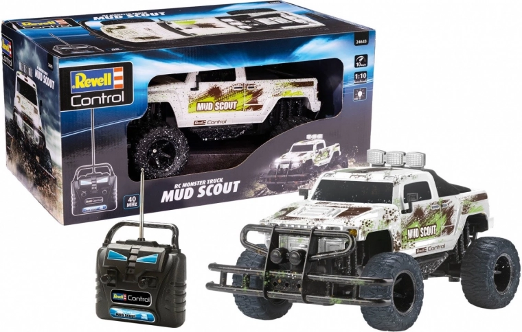 Le contenu de l’emballage comprend le modèle Mud Scout Truck et une télécommande de qualité 2CH 40 MHz.