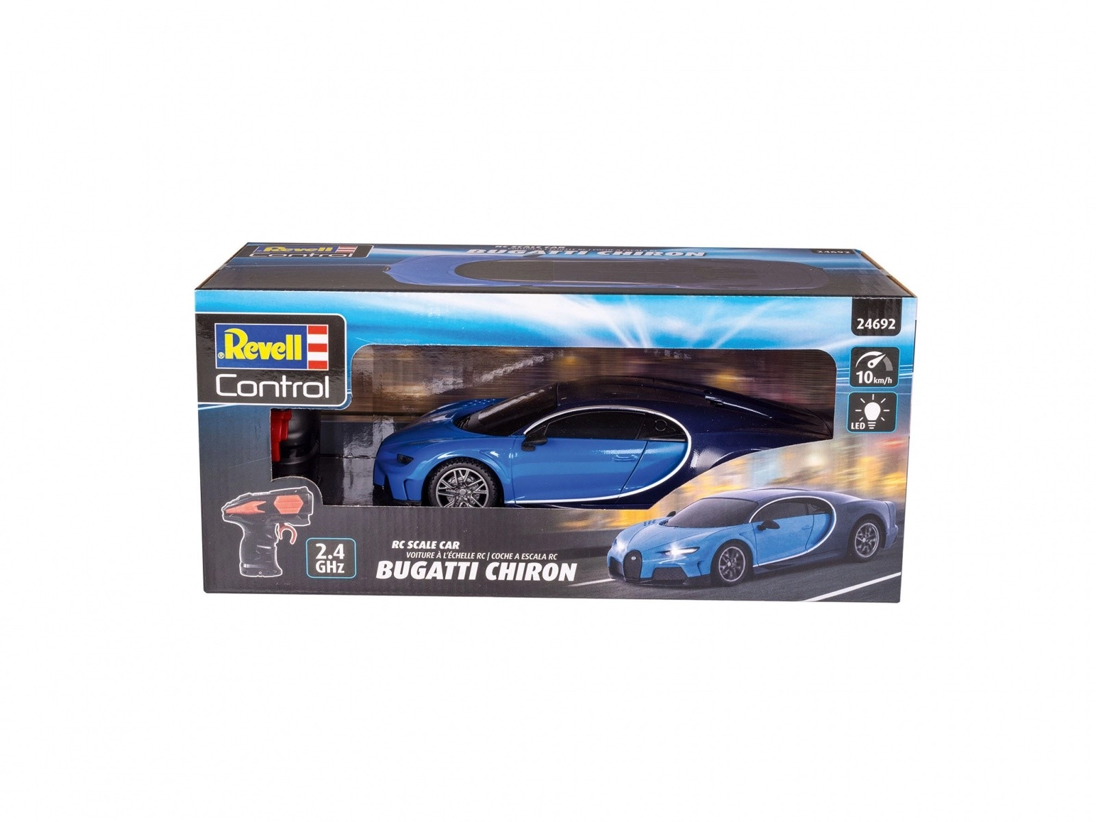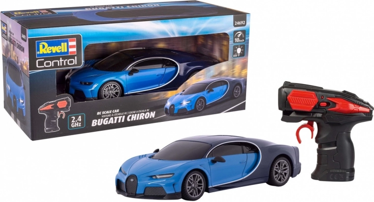 La Bugatti Chiron, nommée d’après le légendaire pilote Louis Chiron, est un chef‑d’œuvre d’ingénierie incarnant perfection et performance. Avec une vitesse maximale de 420 km/h et un prix de plusieurs millions d’euros, la Bugatti Chiron est un symbole de luxe et de vitesse. La Revell Control RC Bugatti Chiron apporte cette expérience directement chez vous dans un format plus petit et plus abordable.