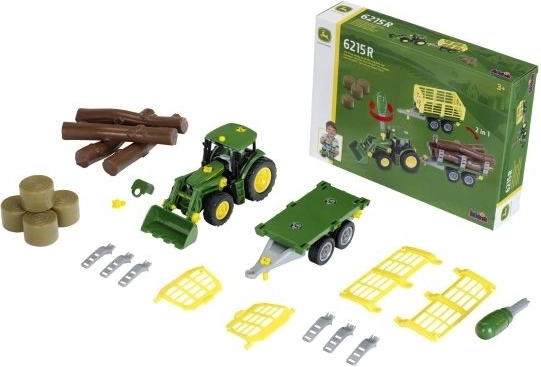 Assemble un tracteur John Deere avec 2 remorques et développe les compétences techniques des enfants.