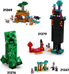 La figurine du Destructeur offre une fonction de jeu réaliste : grâce à un levier, il peut claquer des mâchoires et attaquer avec la tête. Vous obtenez aussi des minifigurines : un garde cosmique, un capitaine pillard, un villageois tailleur de pierre et un défenseur, plus un petit cochon. L’équipement généreux comprend une épée et un casque en diamant, une arbalète, une hache en fer, des torches, un mannequin d’entraînement et d’autres éléments pour des histoires sans limites.